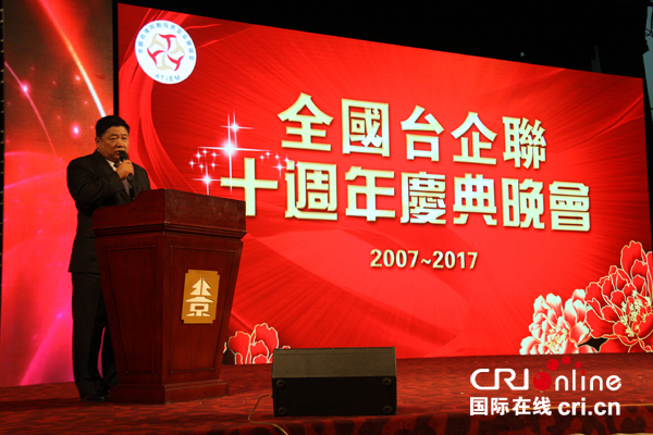 国际在线消息(记者 马晓叶):5月24日晚,全国台企联十周年庆典晚会在北京举办。全国台企联会长王屏生表示,台企联将更加坚定地维护以“九二共识”为基础的两岸关系和平发展,更加积极地在两岸经济交流合作中发挥桥梁纽带作用,更加努力地回馈社会,展现正能量。