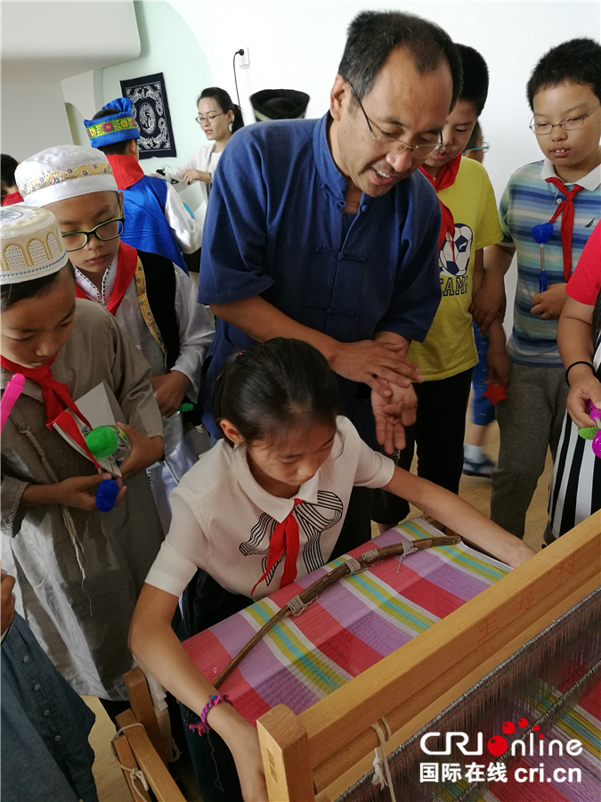 小朋友们在老师的指导下学习传统织布技艺 摄影:卢倩桦