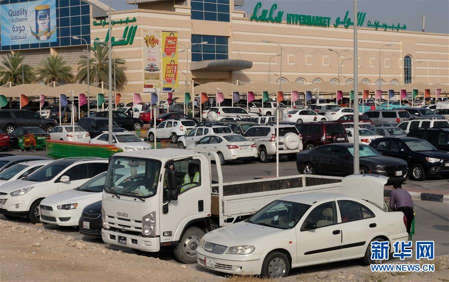 6月6日,在卡塔尔首都多哈,一家商场的停车场停满车辆。沙特等多国5日宣布断绝与卡塔尔的外交关系后,由于担心可能出现的供应短缺现象,卡塔尔当地已现抢购潮。普遍认为,断交短期内将影响卡塔尔民众的生活,但长期看,卡塔尔有能力为境内居民提供可靠的生活保障。新华社发(尼库摄)