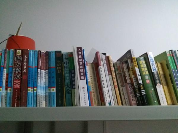张耀东床的上铺摆满了各类医书。