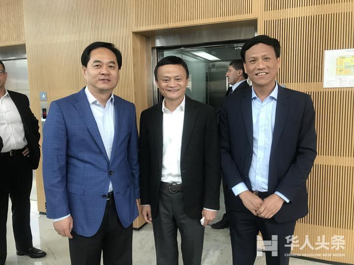 马云代表阿里巴巴集团访阿,左起:驻阿使馆杨万明大使、马云、袁建平
