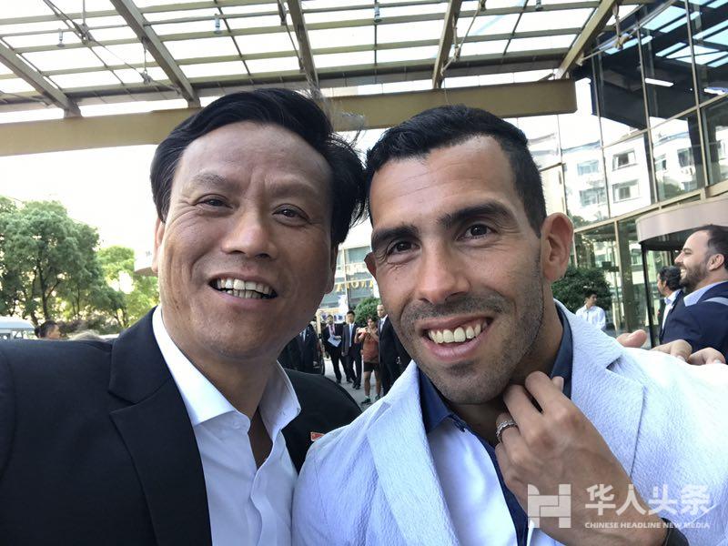 陪同马克里总统访华期间,在上海与阿根廷球星、现上海申花队外援卡洛斯·特维斯见面