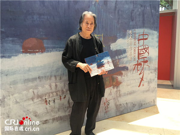 国际在线消息(驻广州记者 谭铮):出生于中国广东,毕业于香港的艺术家水禾田今年已经70多岁,他原姓潘,他说水禾田就是把他的姓拆开而来。采访他的时候,他的同事说他前一晚在广州的太古汇布展到晚上11点多。这一场名为《中国梦·水禾田作品展》选取了北京、上海、广州、香港、澳门、台北等中国有代表性城市的报纸,将六地著名风光地标、文化景物,集中描绘在各地的报纸上,是他近年来创作的56幅作品其中的一部分。他说,我没想到有一天自己画作会在一个美术馆或者艺廊以外的地方展出:“这里(指展览地)是一个玻璃屋,这并不是一个美术馆或者画廊。在画廊布展是很容易的,挂个钩子,或者钉个钉子,把画挂上去就可以了。但在一个透明的空间里,如何展出一些艺术品,这对我来说也是一个新的尝试。”