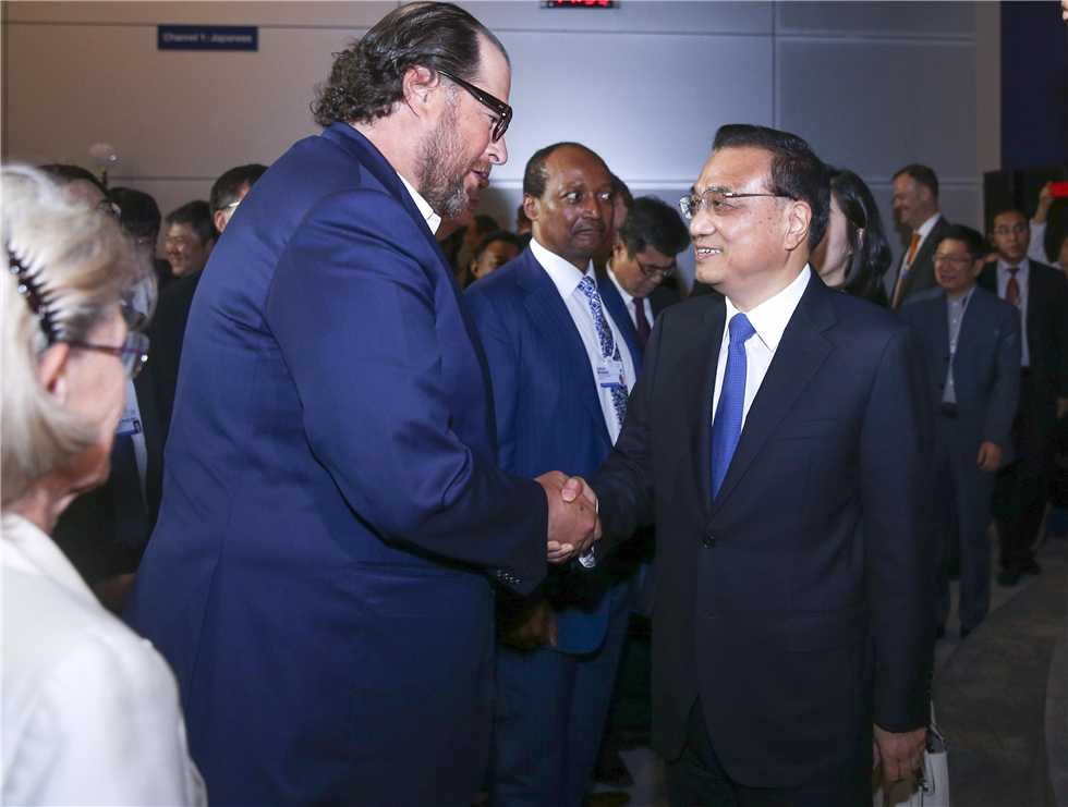 李克强总理28日会见2017大连夏季达沃斯论坛企业家代表时说,中国实施的“互联网+”是面向全球的。很多云平台吸纳外国企业个人注册,基础电信和增值方面对外资开放力度也是发展中国家水平最高的。中国政府会采取包容审慎的监管方式,坚决打击网络欺诈、售假等行为,让外企和中国企业共同发展。