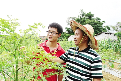 2016年,那坛村36户贫困户利用扶贫资金,集中200亩土地发展辣木种植。但种植户在遭遇病虫害时束手无策,影响了产量,由于缺乏销售渠道,每亩收益仅6000元。今年,通过“龙头企业+科研院所+后盾单位+合作社+村委班子”的帮扶模式,该村初步形成辣木生产加工产业链,产值产量将翻番。