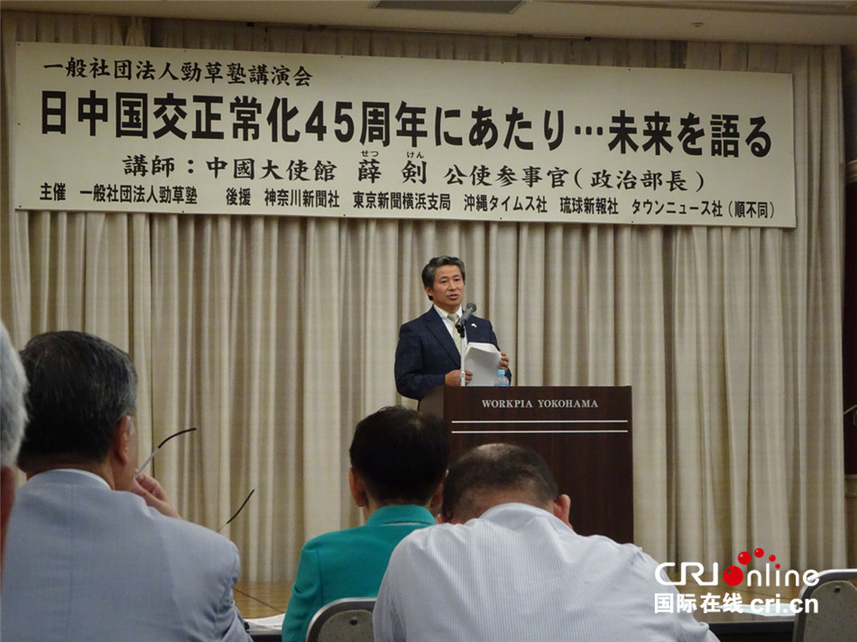 中国驻日公使衔参赞薛剑发表《创建中日关系光明未来》主题演讲