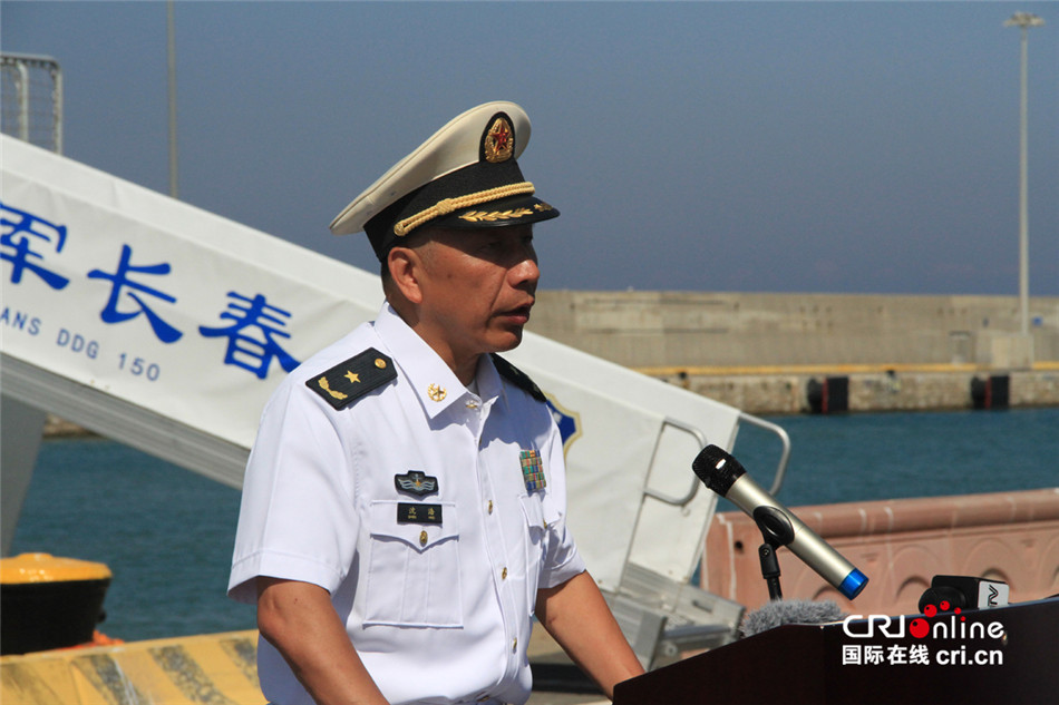 编队指挥员沈浩在欢迎仪式上致辞