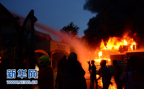 这是7月14日在老挝首都万象三江国际商贸城拍摄的火灾现场。新华社发(刘艾伦 摄)