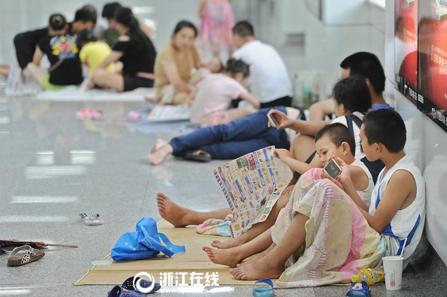 7月18日,杭城持续高温,酷热难熬。在地铁乔司站,不少外来务工者和他们的孩子来此“蹭凉”。据了解,这些外来务工者,有的是出租房没有空调,有的是居住地停电,他们陪着孩子来此躲避酷暑。 浙江在线记者 吴元峰 摄