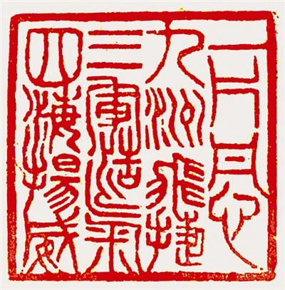 篆刻 《一片丹心,九州飞捷。 三军浩气,四海扬威》 刘夏塘(83岁)刻