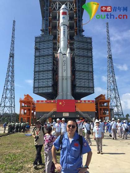 2017年4月,海南文昌发射基地,刘立东在长七遥二发射现场。本人供图