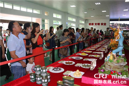 8月3日,驻澳门部队在珠海正岭营区举行“八一”军营开放日活动,观众走进分队饭堂,欣赏战士刀工、雕刻等厨艺。