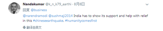 “印度应该对中国的地震提供帮助和救援。”