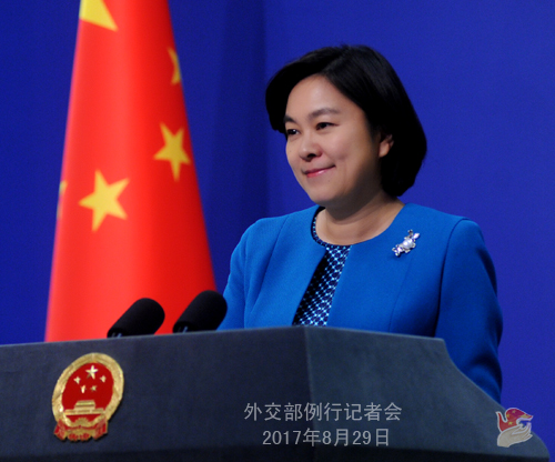 国际在线消息:据外交部网站消息,2017年8月29日外交部发言人华春莹主持例行记者会。实录如下: