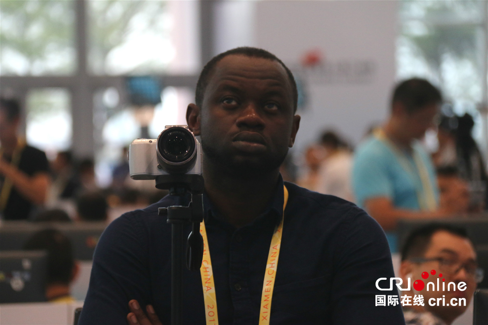 正在新闻中心拍摄开幕式的外籍记者。摄影:黎萌