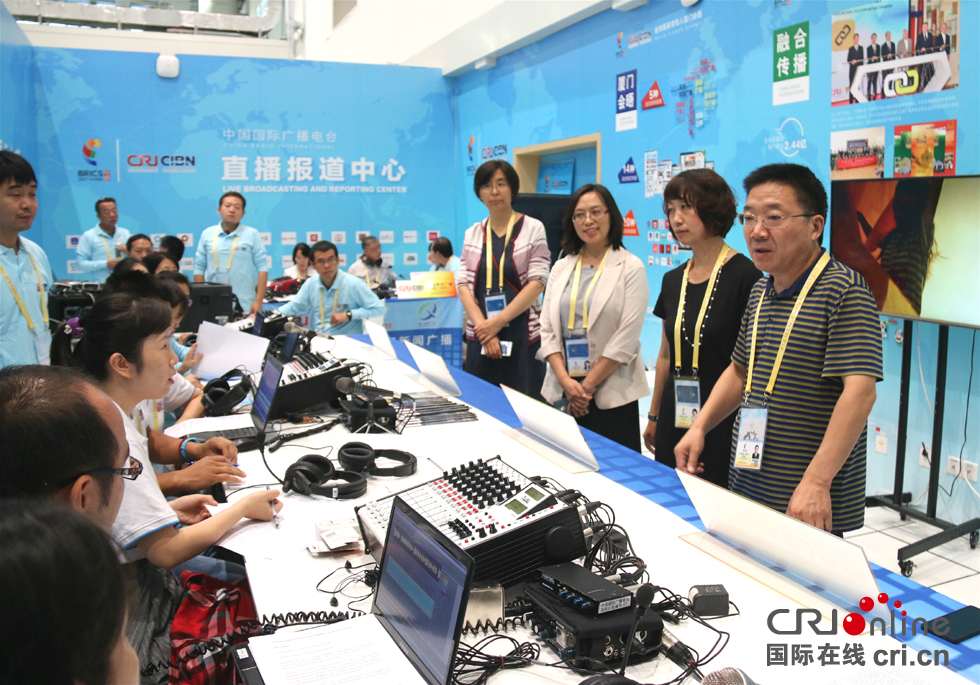 胡邦胜副台长(右一)在直播现场指导工作 摄影:黎萌