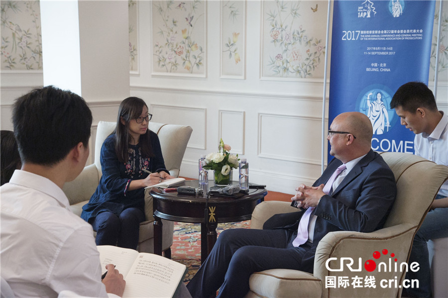国际在线消息(记者 吴倩):第22届国际检察官联合会年会暨会员代表大会将于11日至14日在中国北京举行。大会召开前夕,国际检察官联合会主席吉哈德•乔洛希在北京接受了中国媒体专访。吉哈德•乔洛希表示,目前已有近90个国家和地区的检察官来华出席本次年会,各方期待通过广泛深入交流为共同打击犯罪作出努力。
