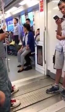 南京地铁上一小伙不肯让座 大妈直接坐到了他腿上