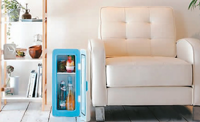 最近,日本在流行一款迷你电冰箱,小巧的体积占用空间极少,方便用户移动。这款迷你电冰箱由于体积的限制,使用了电子制冷方式。电子制冷可以将冰箱内部的温度较环境温度降低15摄氏度。迷你电冰箱有两款尺寸,较大的一款高度为50厘米,可以放置三层易拉罐;较小的一款高度为40厘米,可以放置一层易拉罐和一层啤酒瓶。这款迷你电冰箱的重量很轻,仅为3.9公斤。为方便用户移动,专门设计了一个隐藏式提手,不使用的时候可以直接将提手收起来。这款冰箱有黑白两色,随机标配了外置式电源,每小时的功耗为27瓦。目前在日本售价为12000日元,折合人民币约为742元。