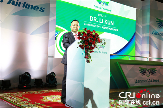 贺南洪在讲话中说,中国国家主席习近平提出的“一带一路”倡议促进了柬埔寨基础设施的建设。澜湄航空的开航,以及正在建设中的暹粒新国际机场和金边-西哈努克港高速公路等均受益于“一带一路”倡议。他表示相信澜湄航空将为柬埔寨至中国和区域内其他国家搭建重要的空中高速公路,运送更多中国和其他国家的旅客到柬埔寨旅游。