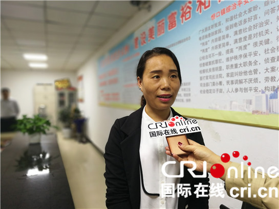 恒口镇党政综合办公室副主任陈波花介绍便民服务中心相关情况(王偲瑶 摄)