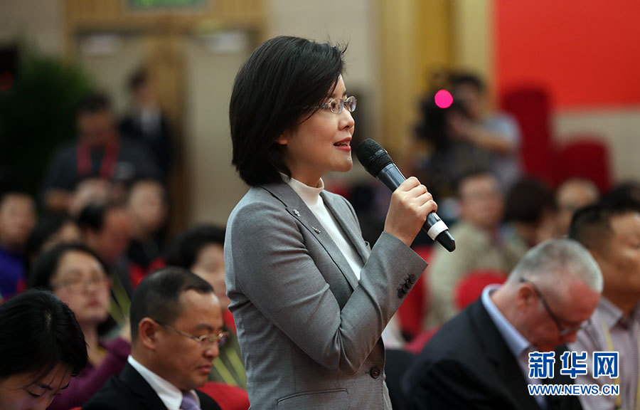 10月20日,十九大新闻中心举办集体采访活动,主题为“实施创新驱动发展战略”。图为中央电视台、中国网络电视台记者提问。新华网 郝广鹏摄