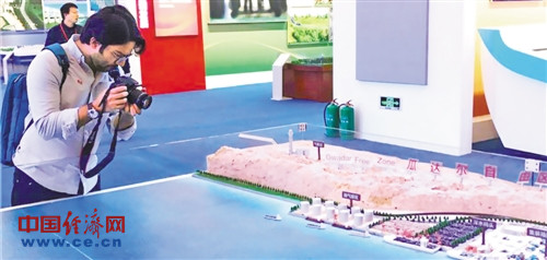 巴基斯坦VSH新闻电视台记者沙默尔·阿萨努拉的家乡是瓜达尔所在的俾路支省。在参观“砥砺奋进的五年”大型成就展时,他看到瓜达尔自由区的模型,兴奋地对着模型拍个不停。 中国经济网记者 于 跃摄