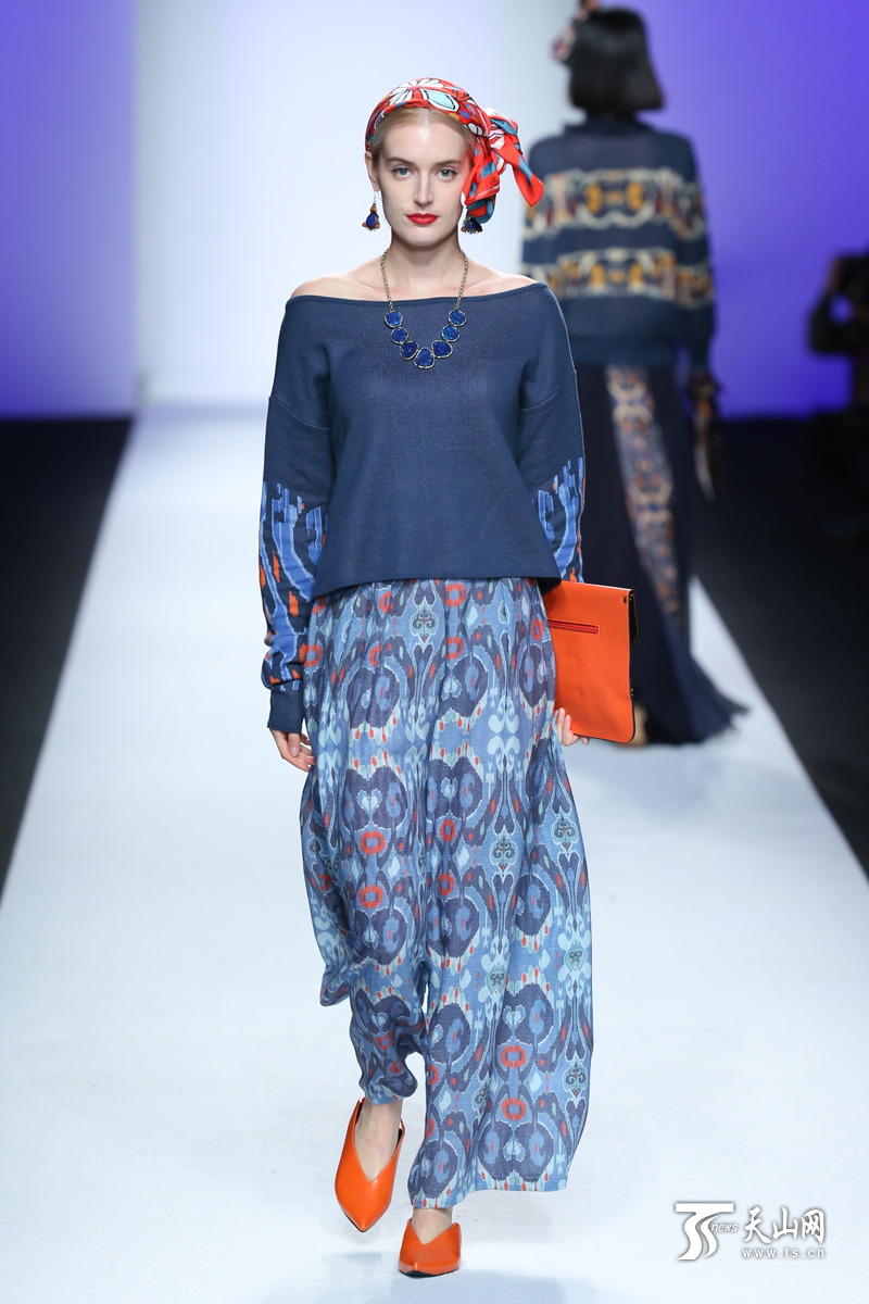当天,三位全国十佳服装设计师孙秀琴、程应奋、陶陶,以及新疆设计师迪拉娜 · 扎克尔凭借对艾德莱斯的专注研究创作,带来了一系列融合设计与市场、民族与世界的原创作品。在模特的演绎下,走出天山的艾德莱斯时装为本届中国国际时装周带来了美丽生动的新疆表情。