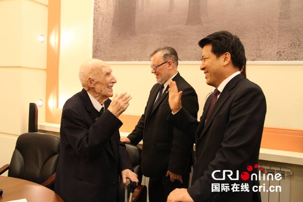 中国驻俄罗斯大使李辉与俄罗斯科学院院士齐赫文斯基亲切交流