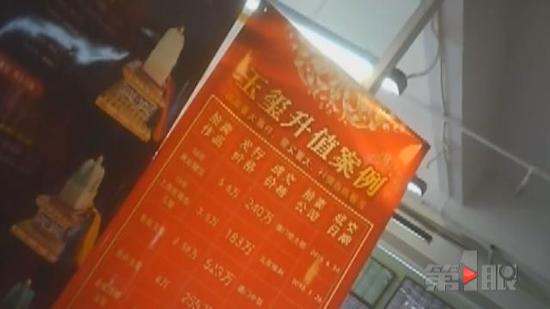 记者随后表示,家里有老人对钱币收藏很感兴趣。工作人员立马向记者推荐起了一种老版人民币,说顾客今年花4800元买,明年公司就要以7800元的价格回收。除了直接回购,这家公司还表示,可以采取帮忙拍卖的形式,帮客户赚钱。公司大厅里摆放着“玉玺升值案例”,内容让人很心动。声称其中一个所谓的玉玺,售价为3万9800。但是两年之后,他们公司就能帮忙拍卖,到时候的起拍价格都是9万8000元。