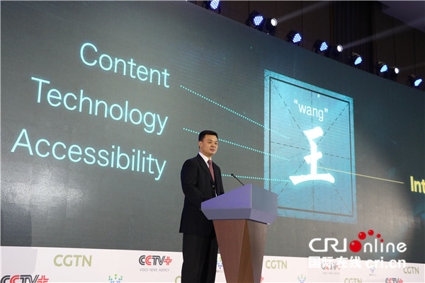 中国国际电视台外语频道总监江和平发表主旨演讲:新型主流媒体的再造升级 摄影:陈鹏