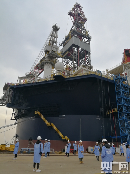 28日上午,“十九大精神进央企”活动采访团来到江苏南通,实地探访了“希望”系列超深水钻井平台。