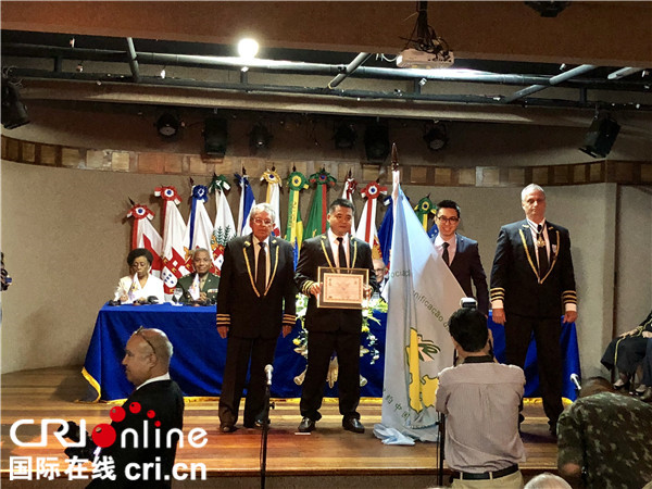 国际在线报道(中国国际广播电台记者 郭昊):当地时间12月1日,巴西军事奖章协会成立10周年庆祝活动在里约科帕卡巴纳军事要塞举行。活动中,奖章协会给10年来为巴西社会做出突出贡献的各界人士颁发了纪念奖章。中国驻里约热内卢总领事李杨和巴西里约中国和平统一促进会因在促进中巴友好关系发展所做出的贡献,分别获得了“荣誉指挥官”和“友好协会勋章”勋章。