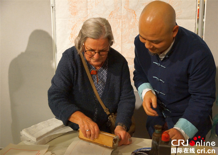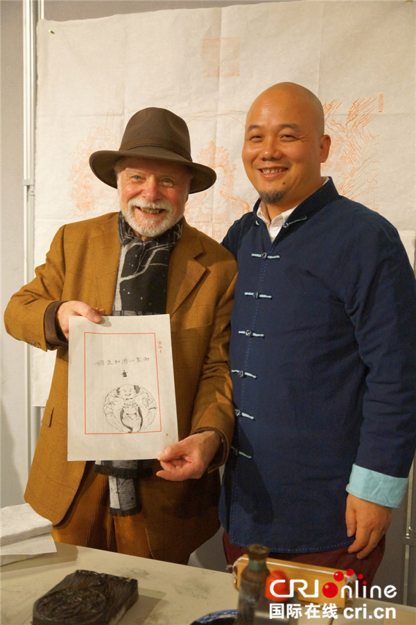 一位德国民众在观展后表示,中国传统的艺术总是非常贴近生活,让人感受到艺术家对于生活的热爱。与此同时,水印木刻这门技艺工序复杂,创作的过程也让人惊叹。魏立中还在现场教观众制作水印木刻作品《一团和气图》,并作为圣诞礼物送给他们。观众踊跃参与,为能够亲身体验木板水印艺术的魅力而激动不已。
