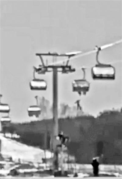 1月13日,河北省张家口崇礼区太舞滑雪场内,一人从正在运行的缆车上掉落。太舞滑雪场经理程刚告诉北京青年报记者,掉落的是一名未成年人,此次出行有大人陪同。