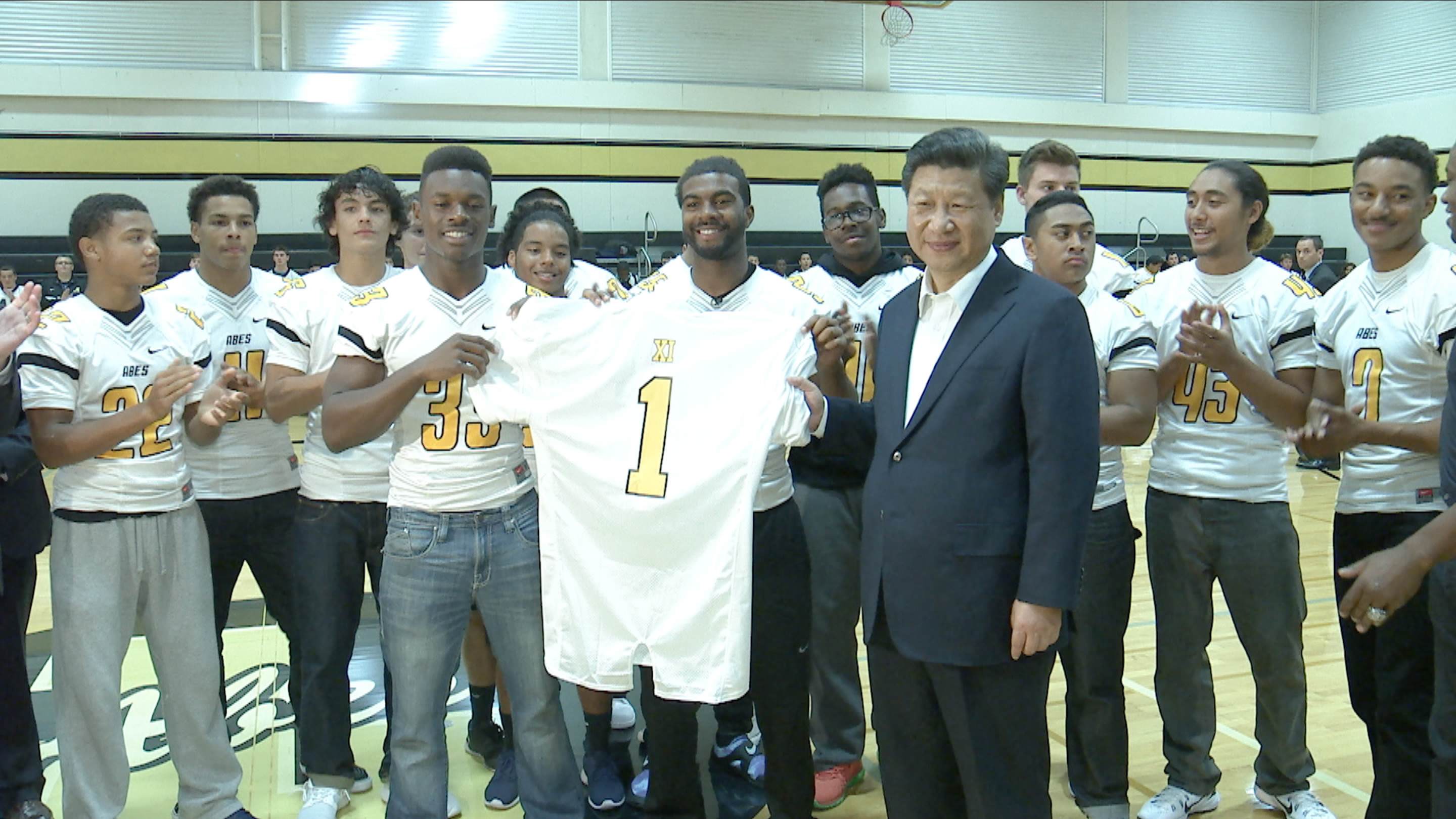 Xi’s popular among young people. He met some students at Lincoln High School in Washington State in 2015.