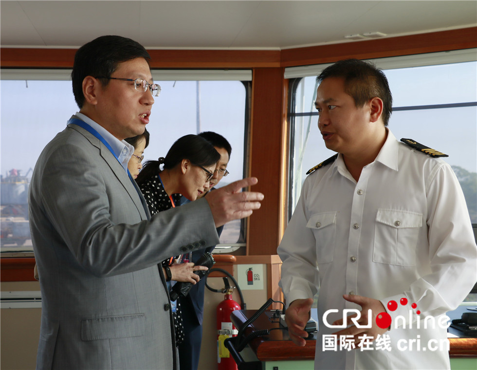 中国驻缅大使洪亮20日在“向阳红03”号科考船上向科考船工作人员了解情况