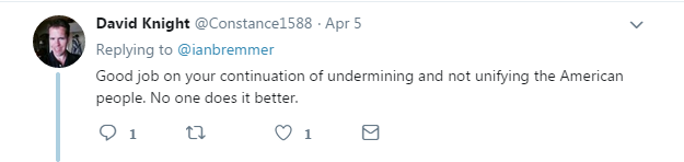 网友大卫(David Knight)发推吐槽称:“干得好!你(特朗普)一如既往的为美国人民掘墓,并分裂着这个国家,没人比你干得更好了!”