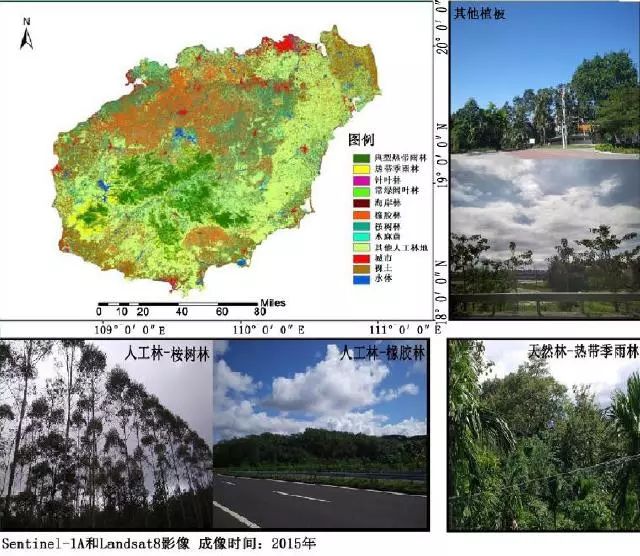 遥感图片:海南岛林地类型分布图,基于SAR与光学协同,利用随机森林方法,生成海南地区天然林、桉树林、橡胶林及其他典型林地类型分布图。(中科院遥感地球所供图)