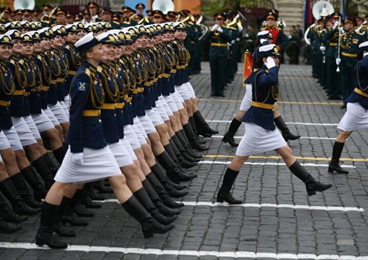 据悉,参加此次阅兵的女性是来自莫扎伊斯基航天军事学院、俄罗斯国防部军事大学、沃尔斯基物资保障军事学院和布琼尼军事通讯学院的学员。这些军事教育机构的女学员们通常会担任军事翻译和通信专家等职务,也有人会从事物流或是金融方面的工作。