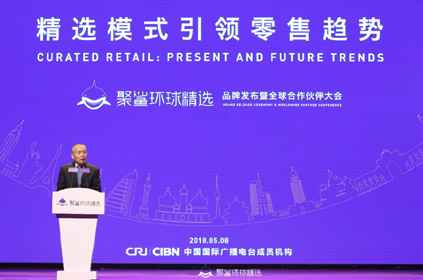 中国国际广播电台副总编辑、中国电视购物联盟理事长任谦在“精选模式引领零售趋势 聚鲨环球精选品牌发布暨全球合作伙伴大会”上致辞