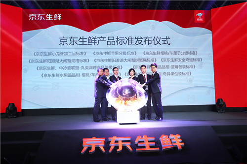 会上还发布了《京东生鲜苹果分级标准》、《京东生鲜樱桃/车厘子分级标准》、《京东&中冷委联盟之丸类调理食品等级标准》等首批京东生鲜标准,涉及产品分级和包装规范两个大类。京东生鲜分级标准是京东生鲜首次明确发布可量化的标准考核指标,京东生鲜包装标准是京东生鲜主导的行业内最大规模的以类别为单位的包装统一革新。京东生鲜标准是以京东生鲜丰富的全产业链经验为基础,与行业协会深度沟通,在相关企业的协同下由京东生鲜制定并面向所有相关生鲜合作品牌发布的系列标准,规范了包装规格、样式,产品产地、品种、色泽、果形、压伤处个数等具体指标,帮助品牌提高产品附加值、大幅降低耗损成本。