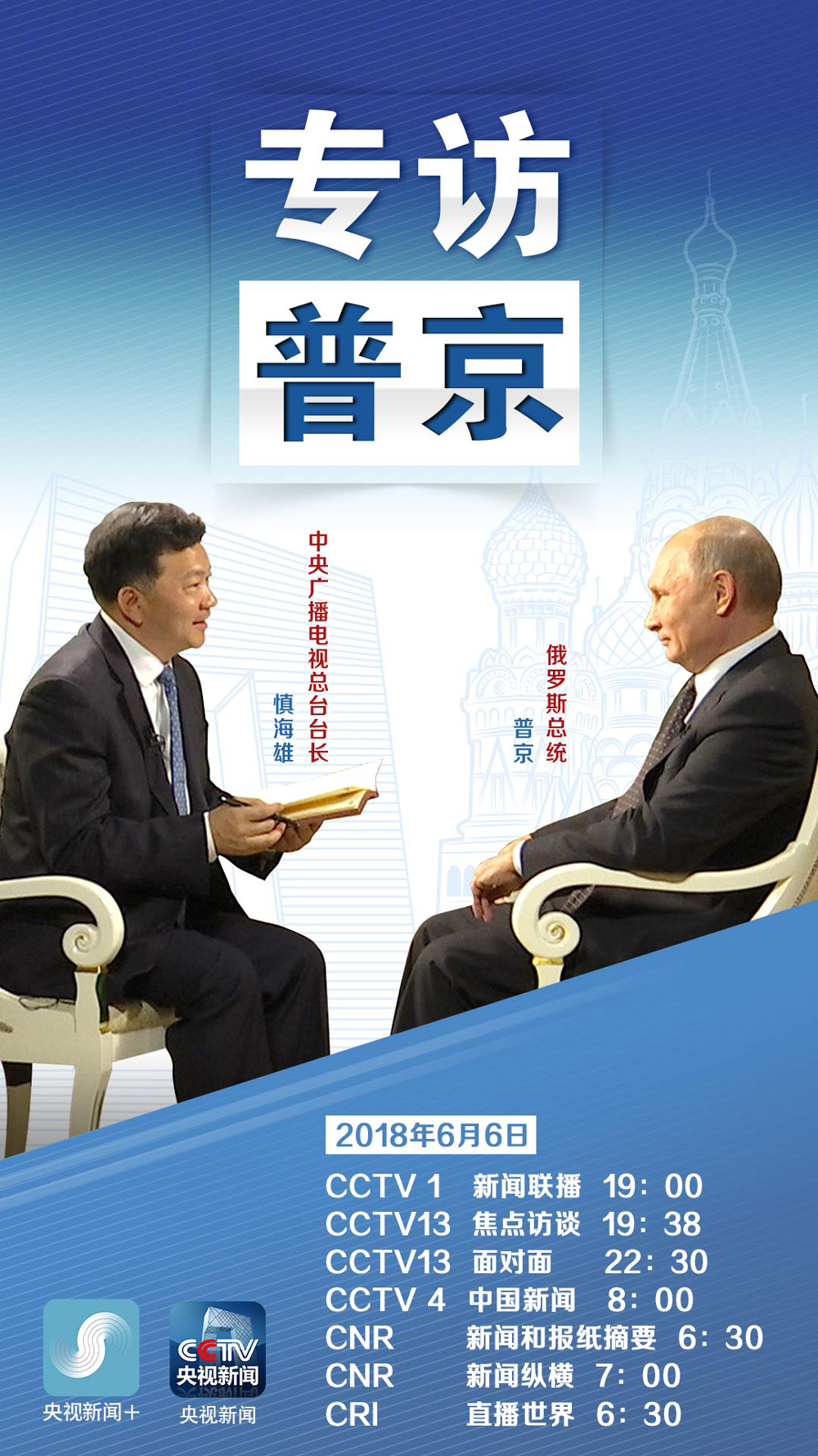 敬请关注:俄罗斯总统普京接受中国中央广播电视总台台长慎海雄专访