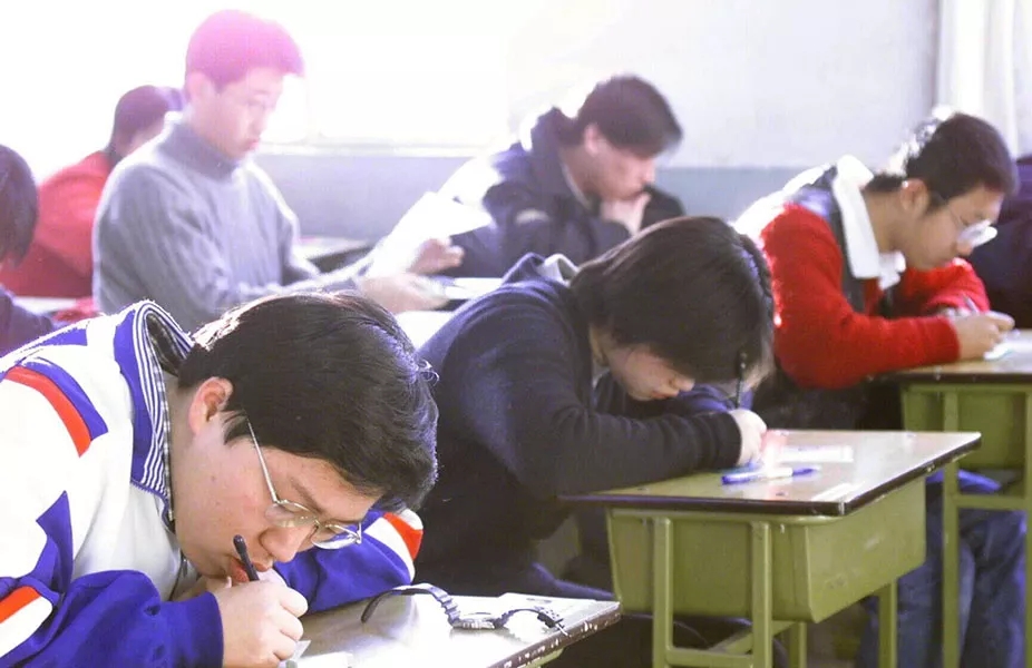▲ 2000年1月19日,北京和安徽两地春季高考开考。大约3.6万名两地考生参加了此次高考。图为考生在北京市第六十二中学考场参加考试。( 新华社记者 高学余 摄)