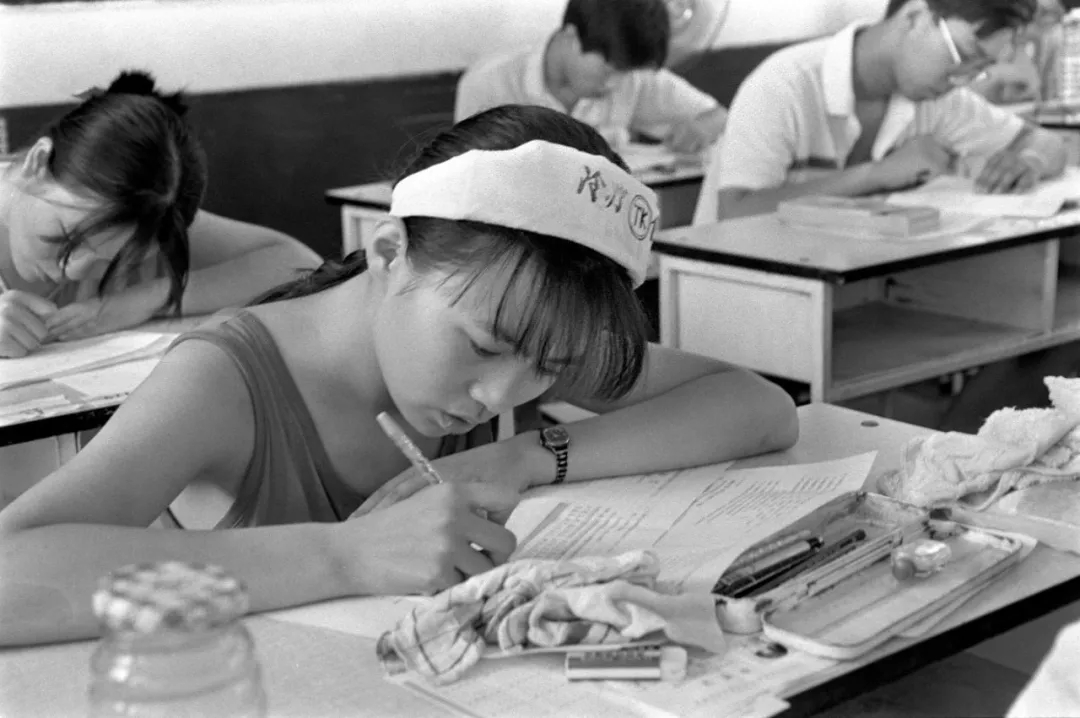 ▲1994年7月7日,南京考生在37摄氏度的高温下考试。(新华社发)