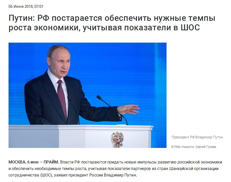 俄罗斯经济新闻通讯社PRAIM网站:普京称 俄罗斯将保障本国经济发展速度