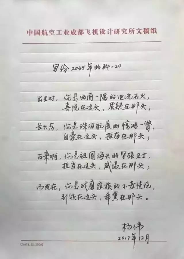 这几天,2018年高考作文题全国I卷“把梦想装进时光瓶,留给2035年的18岁青年”刷爆朋友圈。其实,在2018年1月1日的央视新闻频道特别系列节目《写给2035年的信》中,西北工业大学杰出校友、歼-20总师杨伟,就给2035年的歼-20写了一封信。让我们看看他会如何作答。