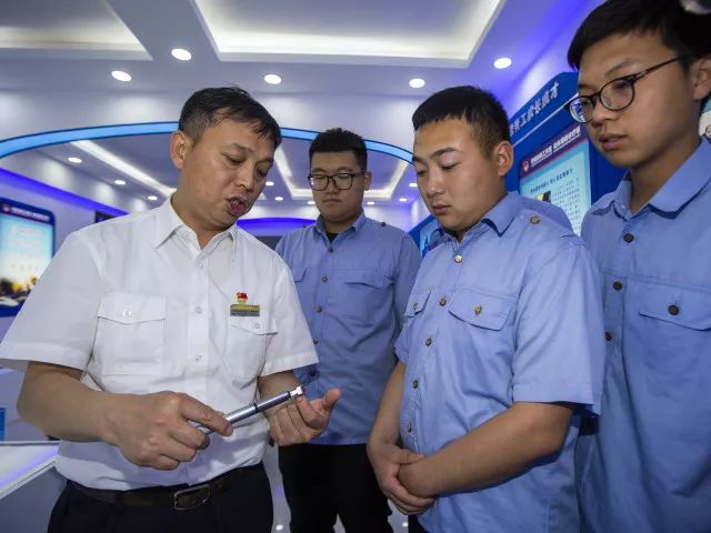 董宏涛在动车检修现场为青工传授动车组检修经验