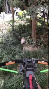 ◀视频中,有人准备射杀猫。