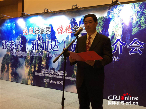 国际在线报道(中国国际广播电台记者 朱福宁 李树坤):中国湖南省张家界市27日在印度尼西亚首都雅加达举行旅游推介会。本次推介会以“绝版张家界,惊艳全世界”为主题,是张家界市首次由政府牵头在印尼举办旅游推介会。印尼旅游部相关负责人以及印尼旅行商代表参会。